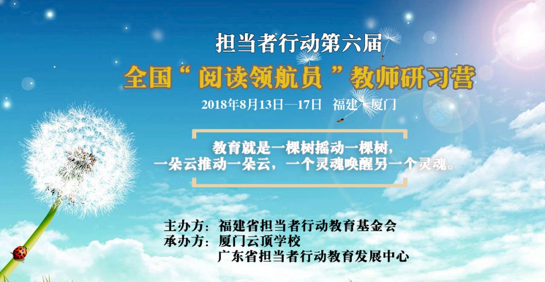 全国“阅读领航员”教师研习营,从全国的项目学校中选拔优秀的阅读种子教师,聚集在一起。不仅是一场阅读的培训,更是一次发现儿童、发现自我之旅,是一场场真诚的对话。优秀的教师往往不是靠培训产生,而是源于内心深度的觉醒,然后开始自觉主动地成长。在五天的研习中,将围绕儿童观、教育观、阅读观、语文观进行研习内容的设置,培育具有教育情怀的乡村阅读“领航者”。让与会的教师打开教育的视野,重新认识儿童,重燃教育的激情和梦想,找到教师职业的成就感和尊严感,用阅读去点燃、唤醒、激励孩童的梦想和希望。同时彼此遇见,结下深厚的友谊,汲取前行的力量。