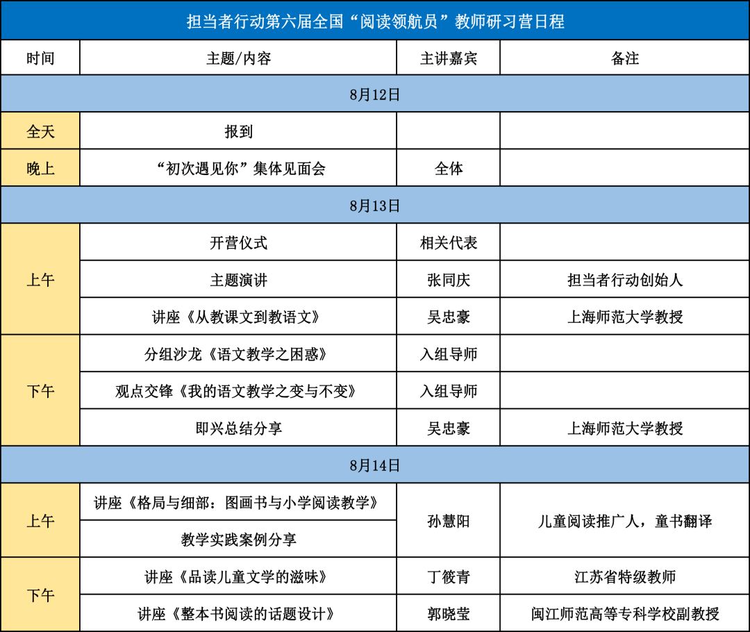 2.全国“阅读领航员”教师研习将会有160名左右的种子教师参与,每10名将分为一个小组,由一名入组导师带领。每一组将会是一个小的团队,入组导师负责带领团队的建设。