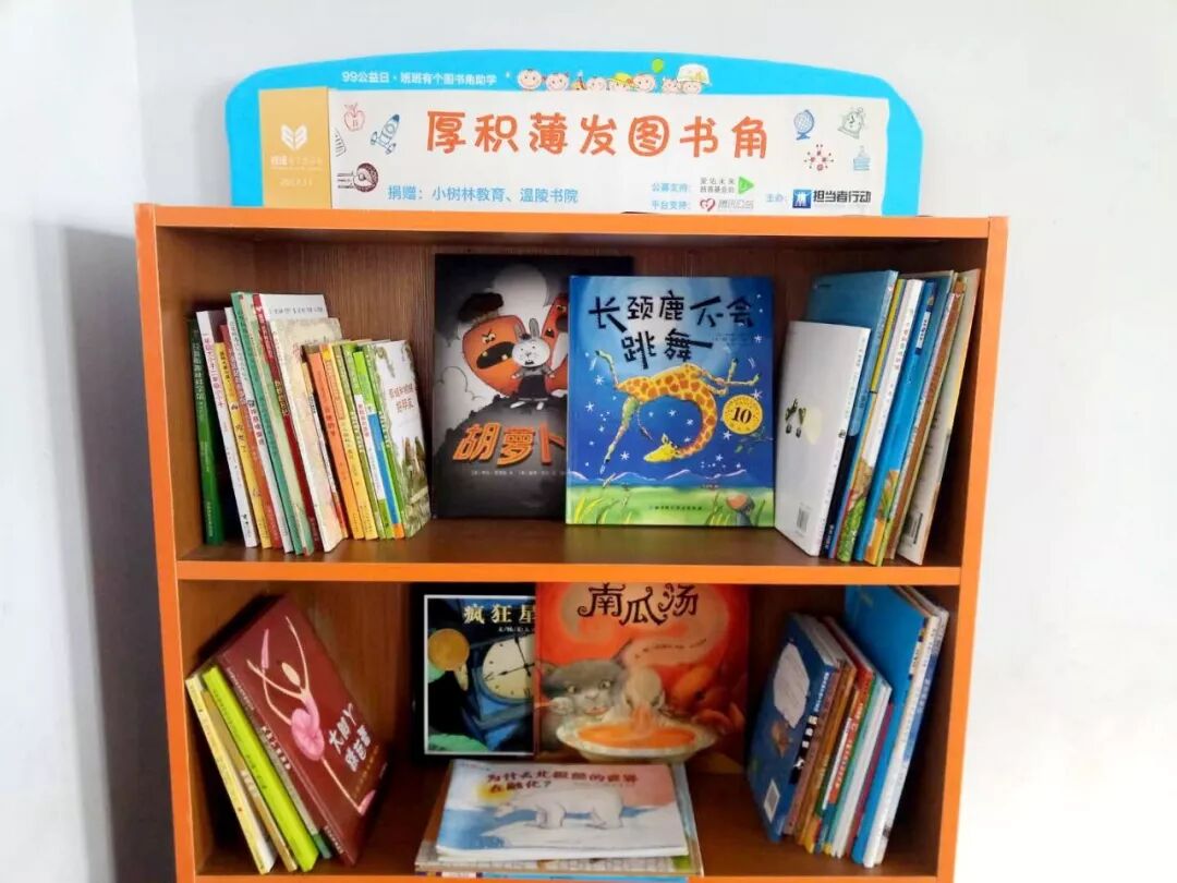 27个图书角伴随着余晖建设完毕,11月底的村子里寒意渐浓,我的心里却暖暖的。回想着孩子们的笑脸,想象着他们读着绘本图书傻傻发笑的情景,想象着他们和我一样沉浸在宫西达也霸王龙的世界里,想象着他们兴奋地给弟弟妹妹讲故事的情景……我不知道这70本书会给孩子们带去什么,我只知道他们的童年里有图书的陪伴,他们有可能会发生一些改变,这就足够了。