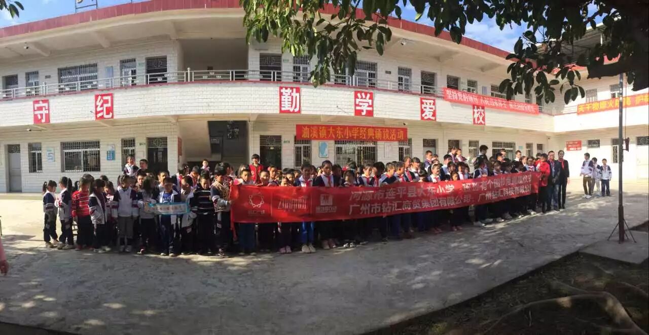 时间倒回11月22日,在广州参加培训的我接到钻汇集团Bonnie的电话,说公司有意做助学方面的公益活动。简单的交流后,便约好时间去公司拜访。那场会面可以说是“老乡见面会”, 广州市钻汇商贸有限公司人力行政经理Angel和我是老乡, Bonnie是在韶关上的大学。愉快的交流之后,之后Bonnie联系我,说愿意和担当者行动一起做这件有意义的事情。在经过多次的沟通之后,决定12月22日一起去河源市油溪镇大东小学建设图书角。